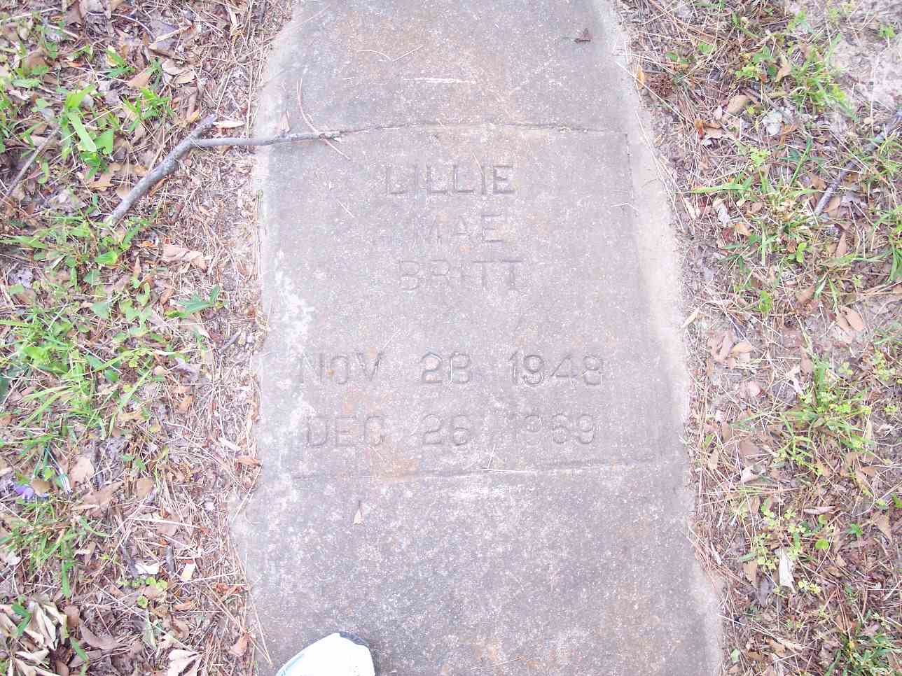 | Select | Britt , Lillie Mae | 1948/ 11/ 28 | 1969/ 12/ 26 | Oak Grove 1 | Click for Tombstone Photo |